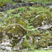 さざれ石 2017年05月06日 15:00 学名、石灰質角礫岩と言い、石灰石が長い間に雨水で溶解し、その粘着力の強い乳状液が次第に小岩を凝結、だんだんと巨巌となり河川の浸触により地表に露出、苔むしたものである。 こ ...